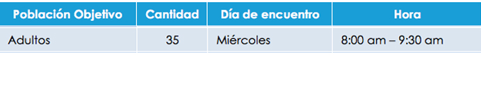 Con los adultos efectuamos encuentros en donde, bajo el principio de la evangelización, buscamos fortalecer el hecho de que sean protagonistas de su propio desarrollo humano.